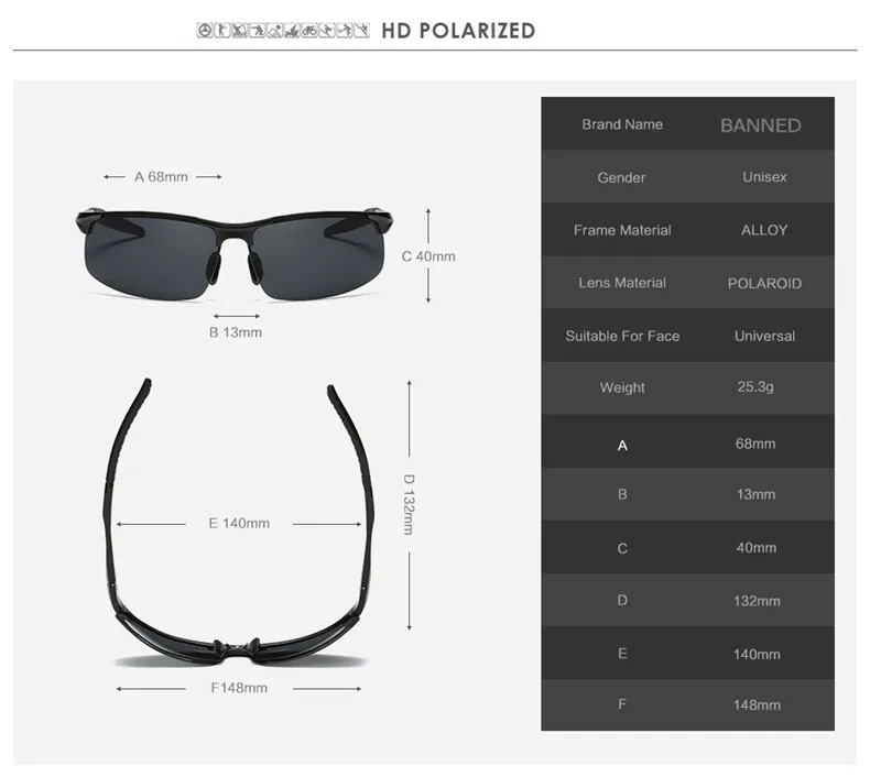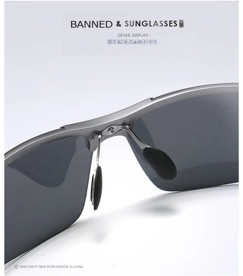 Banned 1976 : Partial Framed Polarized Sunglasses (UV400) Aluminum Magnesium Spring Hinges (High Quality) Men/ Women, Oculos with Carry Case/ Lens Cloth. Multiple Lens Colors, High Quality